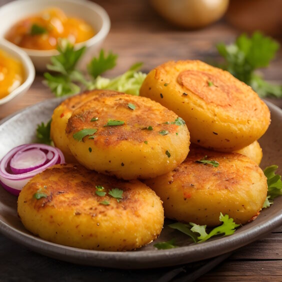 Aloo Tikki is most popular Indian snacks, base of potato and blend of spices. Traditionally round flat patty, shallow fry and served crispy golden brown. Served with Tamarind and Coriander sauce(chutney).
